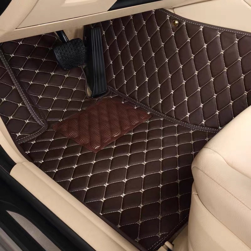 Luxury Style Grid Leather Car Floor Mat Set Non-Skid 5mm Thick 1 Year Warranty for General Motors BYD Changan Chery Haval